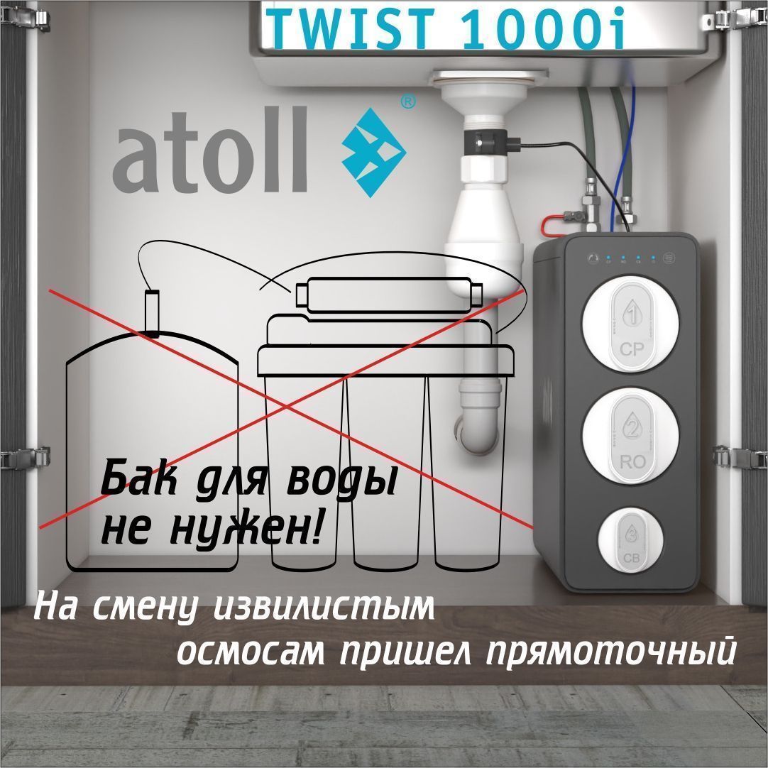 Осмос ХХI века.Прямоточная система обратного осмоса без накопительного бака atoll TWIST 1000i.