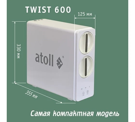 Рекордно малые размеры atoll TWIST –делают фильтр универсальным для любого кухонного пространства (ширина корпуса всего 12,5 см)