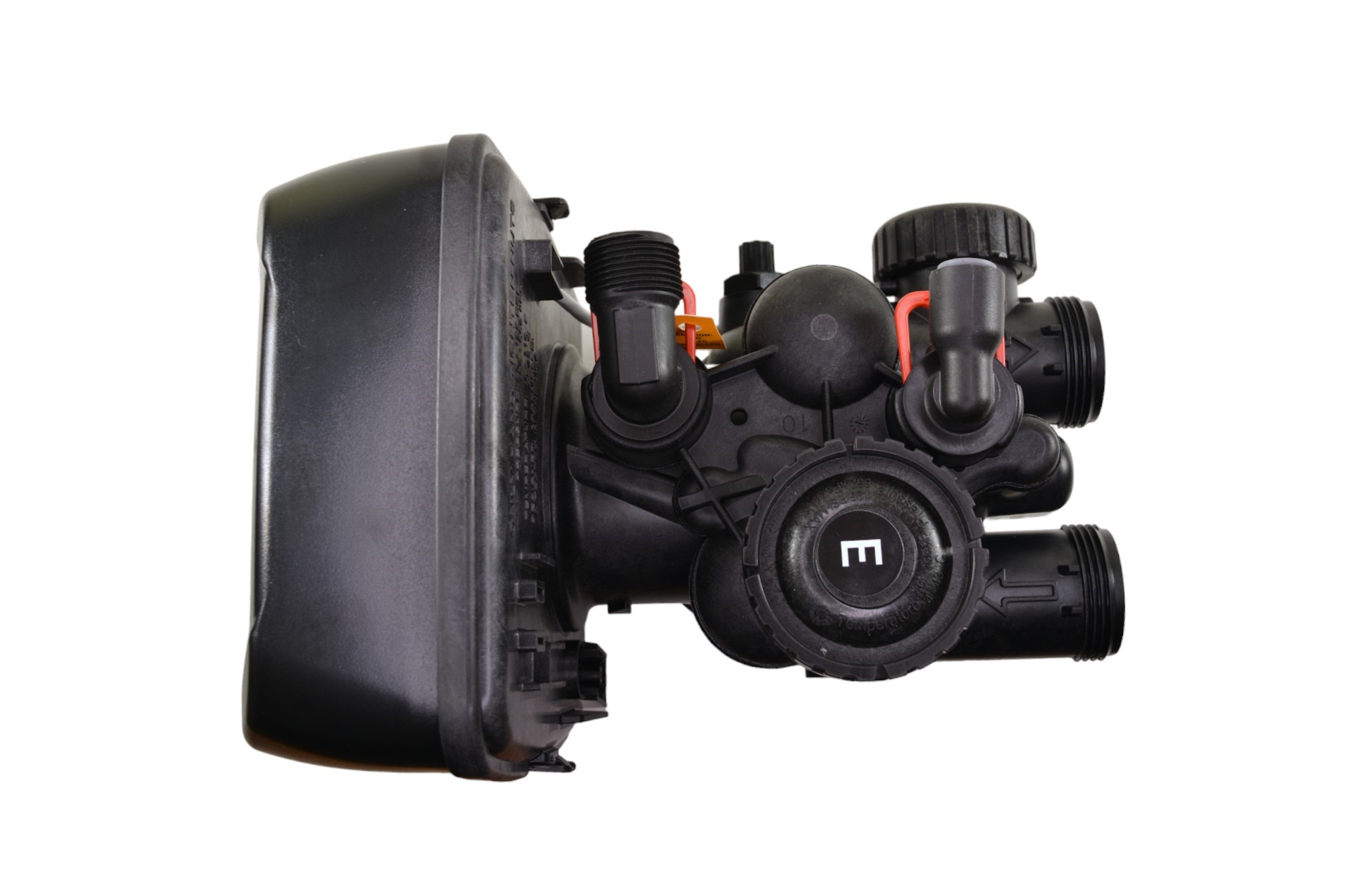 Управляющий клапан V1CI-DME в сборе c водосчётчиком и штуцером солевой регенерации.